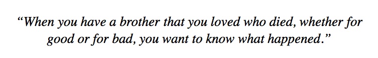 “Because it’s a philosophical question,” he said. “There is truth, and there is objective truth. I’m not a believer in postmodernism. Bereaved people always want to know the exact truth. They don’t want to hide from it. When you have a brother that you loved who died, whether for good or for bad, you want to know what happened.”